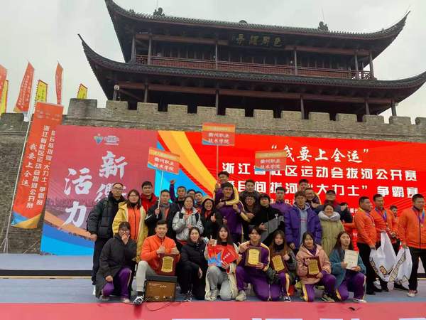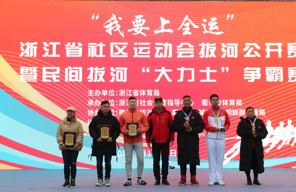 12月19日,由浙江省体育局主办,浙江省社会体育指导中心和衢州市体育局联合承办的“我要上全运”浙江省社区运动会拔河公开赛在衢州市水亭门文化街举行,比赛汇集了长三角地区23支专业拔河队伍,300余名运动员,可谓高手云集。