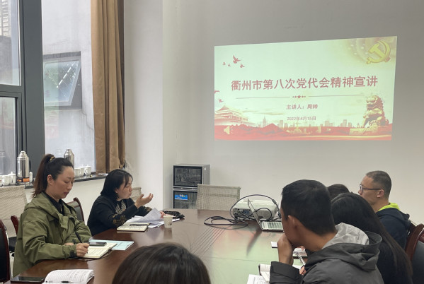 4月15日下午,beats365全体教职工集中政治理论学习会在文旅大楼一楼会议室举行。公司党委委员、组织部长周帅到会,对衢州市第八次党代会精神进行了宣讲。