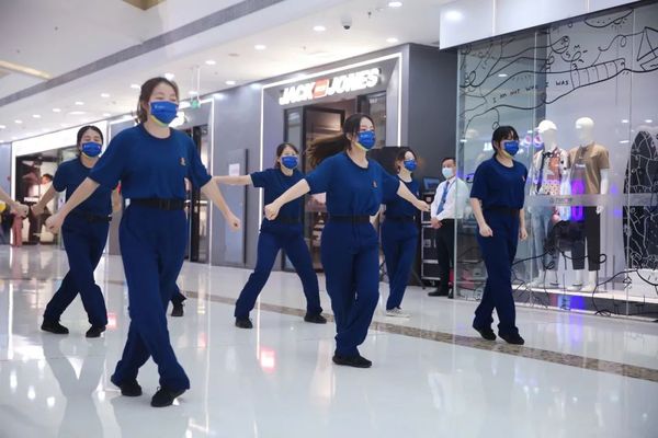 活动开始,公司员工与8名消防员组成的舞者踩着《孤勇者》节奏,从四面八方迅速聚拢,以舞步轻快、刚劲有力的快闪舞蹈致敬英雄。