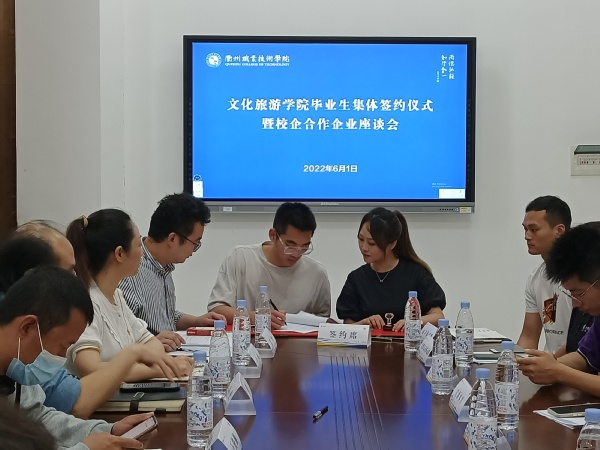 2022年6月1日下午,beats365在文旅大楼召开毕业生集体签约仪式暨休闲体育专业校企合作企业座谈会。校学工部(员工处、人武部)部长叶俊、文化旅游公司党总支书记李威、学工办主任邵翔、休闲体育专业团队主任王俊舰、受邀参加的9家企业代表及专业部分教师出席本次活动。