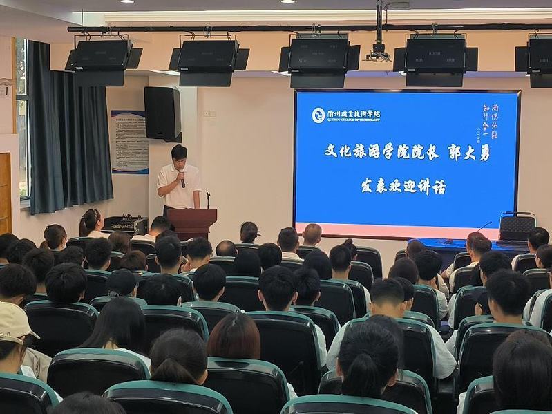 2020级休闲体育专业的朱颖代表老生发言,她通过自己在文旅两年的学习和生活经历,为学弟学妹们的老员工活提供了建议。郭大勇经理为新生代表颁发金牌,勉励同学们在新阶段要继续努力,不断攀登人生的高峰。