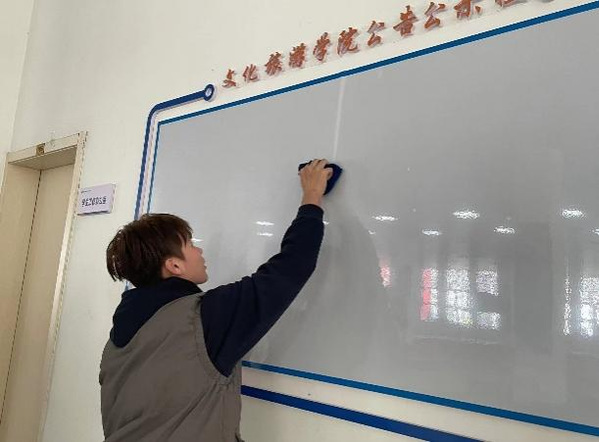 体育场馆、文旅大楼和教室里都有老师和同学们忙碌的身影,大家干劲十足,确保不留卫生死角、不留清洁盲区。