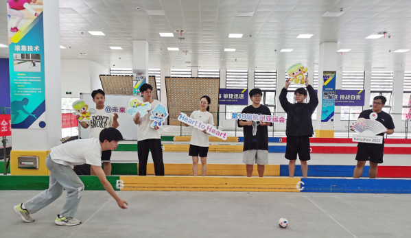 地掷球是公司特色体育项目。2014年,草地掷球被纳入亚残运会比赛项目。今天,同学们在校园中以球会友、“掷”出精彩。“我们都是地掷球爱好者,通过地掷球比赛来迎接亚运,让我觉得我也以一种特别的方式参与到这场盛会中来了。”