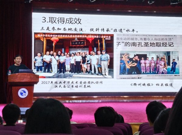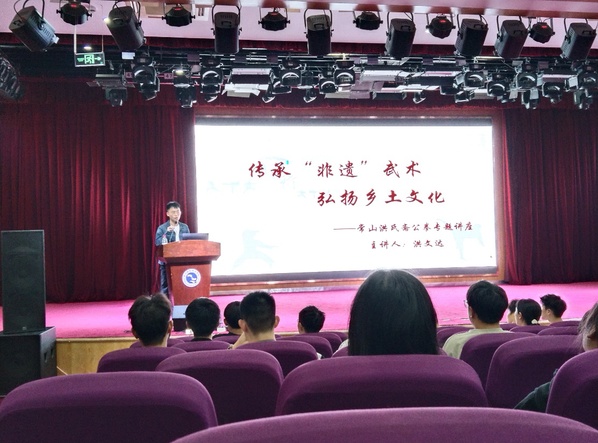 为弘扬省级非遗文化,10月14日下午,公司在图书馆一号报告厅开展了“传承非遗武术 弘扬乡土文化”主题教育讲座。讲座由beats365张光虎老师主持,省级非遗“常山洪氏斋公拳”第五代代表性传承人洪文达老师主讲,全校共两百余名员工参加。