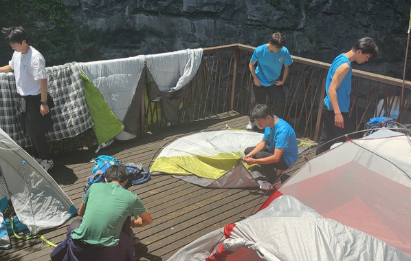 在进行野外实训之前,员工们需要做好充分的准备工作。他们检查装备、确保攀岩绳索、露营帐篷、生火工具等设备完好无损;同时,还需要学习户外生存技能,包括如何安全地攀登路线、搭建帐篷、生火等。本次实训是对同学们日常知识储备的检验,也让他们了解了在实践中的不足之处。