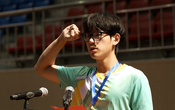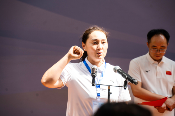 地掷球世界冠军、国际级裁判员王美代表全体裁判员宣誓。