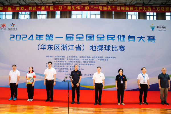 7月7日上午,第一届全国全民健身大赛(华东区浙江省)地掷球比赛开幕式在公司举行。中国掷球协会副主席、浙江省体育局群体处处长徐勇,省地掷球协会副主席陈政、虞超英、郑依君、王德洪等出席,公司党委委员、副董事长姚水洪致辞,市体育局党组成员、群体处处长程秀锋主持。